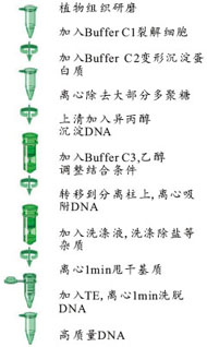 | 描述: | 新鮮或干燥的植物組織(細(xì)胞)磨碎后經(jīng)裂解液裂解,蛋白質(zhì)、多糖、細(xì)胞殘片被沉淀去除;隨后異丙醇沉淀基因組DNA去除其余的雜質(zhì);調(diào)節(jié)結(jié)合條件然后轉(zhuǎn)移至GBC柱子中離心吸附DNA;兩次快速洗滌去除殘留的多糖類等雜質(zhì),最后DNA溶解于滅菌水或低鹽緩沖液中。 | ||