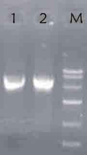 250ml菌經(jīng)質(zhì)粒大提試劑盒提取質(zhì)量后,1.2ml洗脫,取2μl電泳分析.